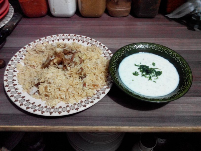 It is savoury meat flavored rice that can be made from just about any kind of meat. Here, we use mutton, but you can substitute that with an equal measure of whatever type of meat you prefer; be that chicken, turkey, beef or lamb. It produces a different and unique flavor with each and every different meat. You can also use any cut of meat that you like, be that thigh, ribs, shoulder, whatever, but keep in mind that the best and richest flavor comes from the bony parts of the animal.
