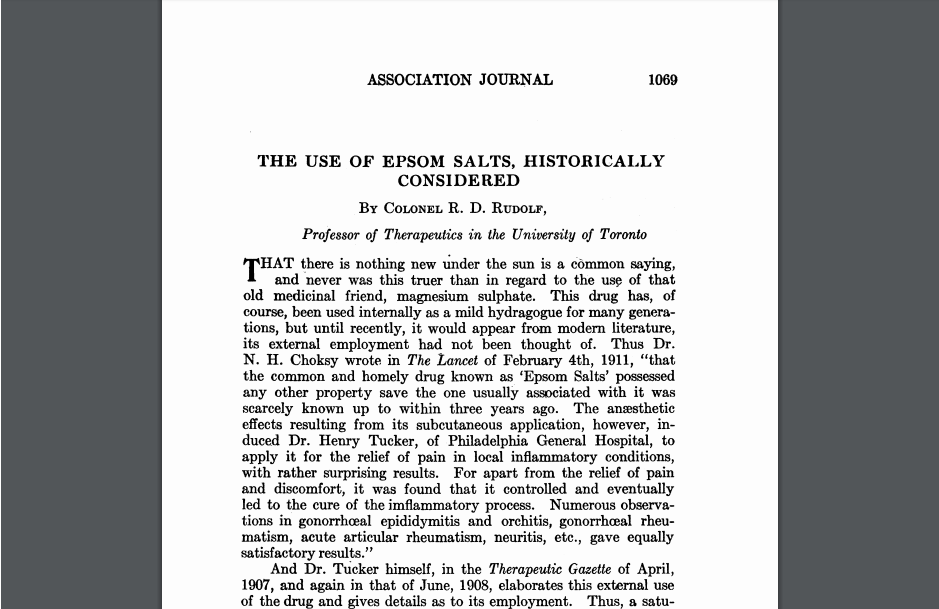 We just found this amazing and informative article about the history of Epsom Salt use and wanted to share it with you. All credit goes to the original author, we just want to share that information with you guys. Following is a snapshot from the article and its link: