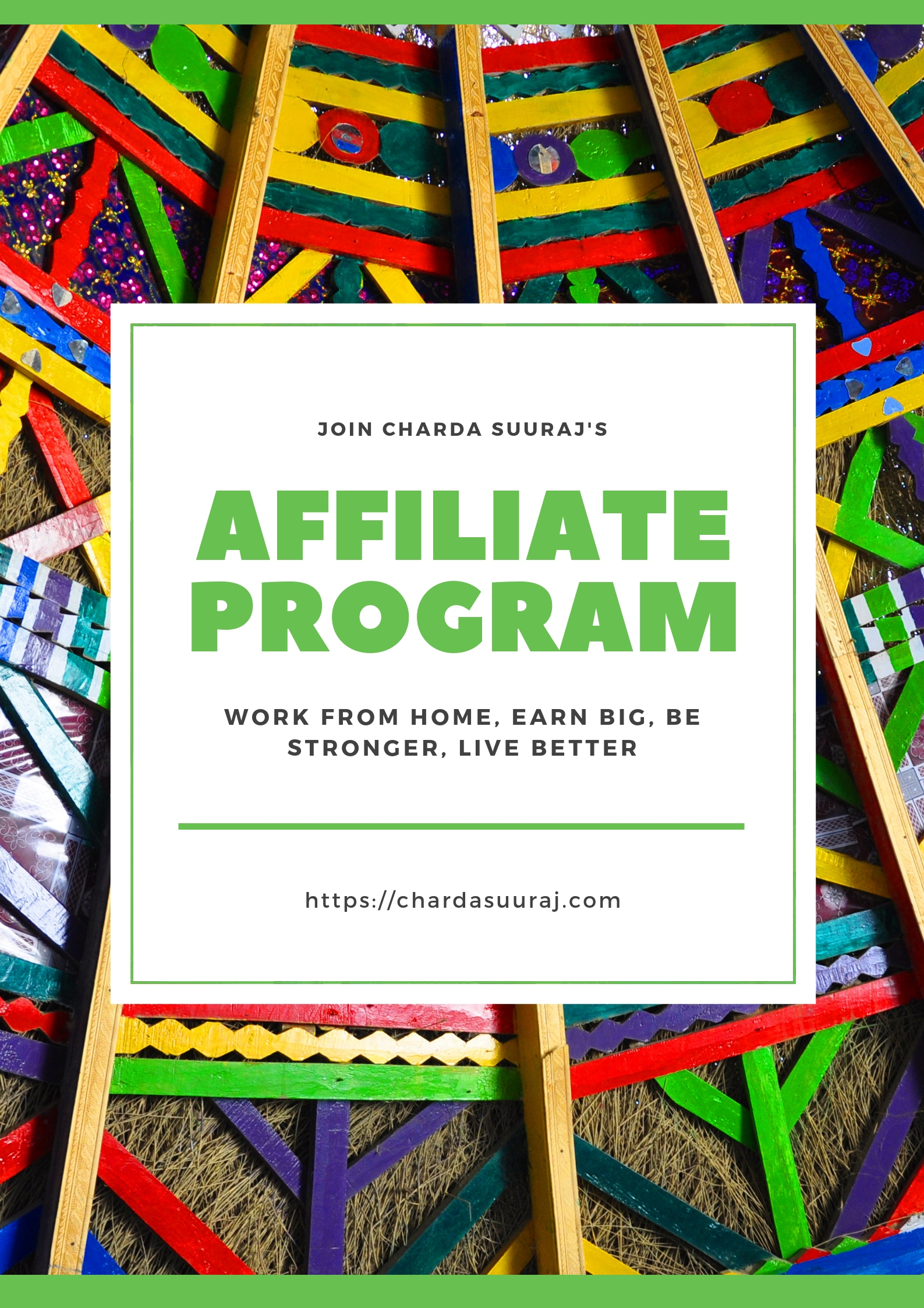An overview of our programs is below. For full terms and conditions Visit the Charda Suuraj Affiliate Program Service Agreement Page.