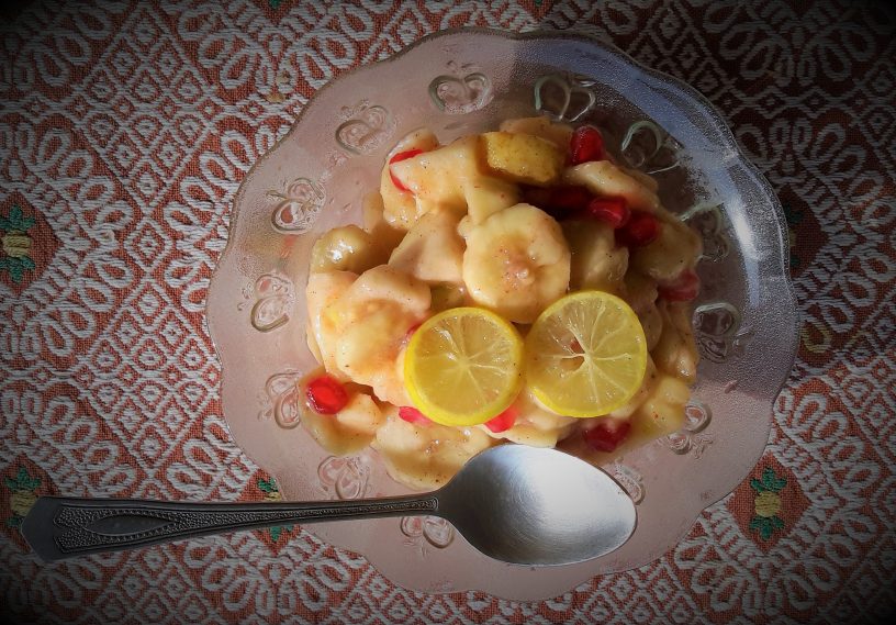 Firstly, I will write the recipe I used for the fruit chaat I made in the picture above.