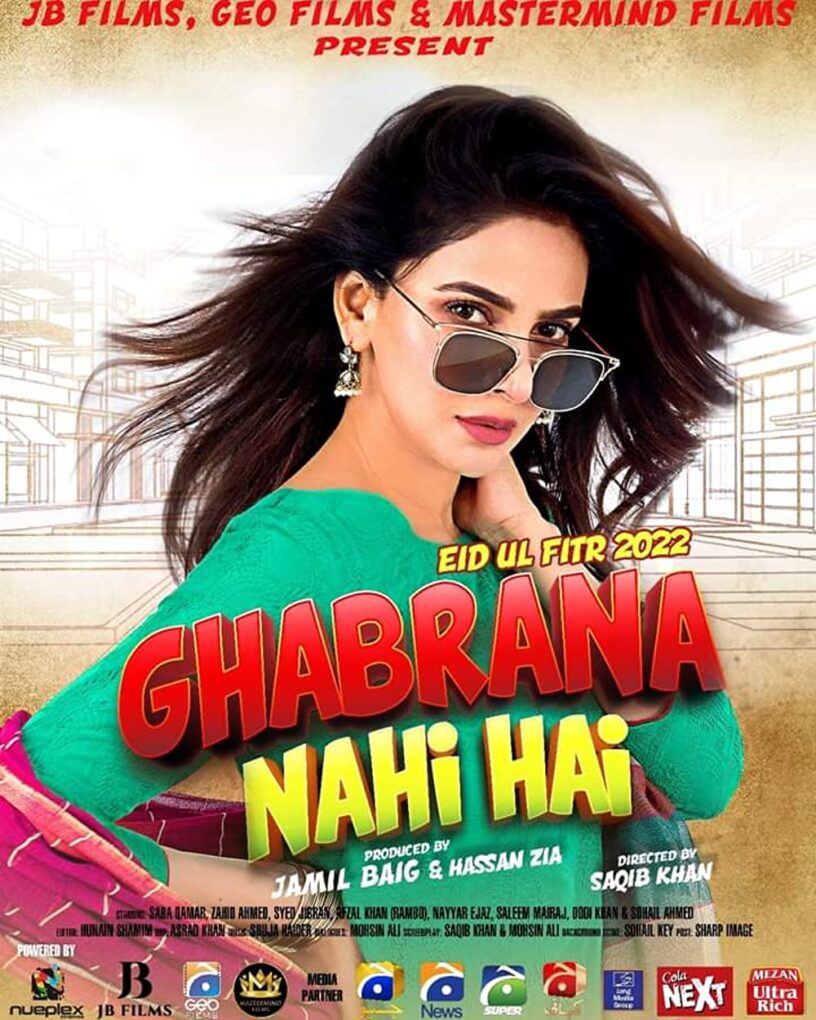 The film “Ghabrana Nahi hai” was released in Cinemas on Eid 2022, its title is a pun upon former Prime minister Imran Khan’s statement about heretofore unseen high inflation in Pakistan, ‘Aap Ne Ghabrana Nahi hai’ for which the politician is infamous. The movie takes the ironic statement and uses it as a running joke throughout. The film is directed and co-written by Saqib Khan with Mohsin Ali. It is the story of a Pakistani Tik Tok Star trying to set right a wrong done to her family. Featuring renowned actors Saba Qamar, Zahid Ahmed, and Syed Jibran among others, it used comedic timing and charm to set a hilarious and sometimes cringy tableau.