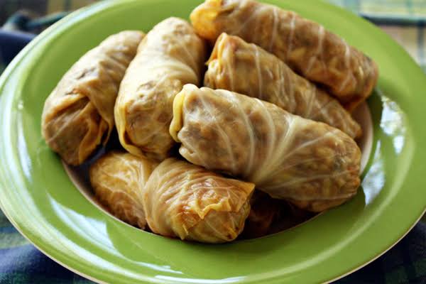 - Add to the boiling water the cabbage leaves, cover and boil until the leaves can be rolled without breaking. It is very important not to overcook the cabbage.